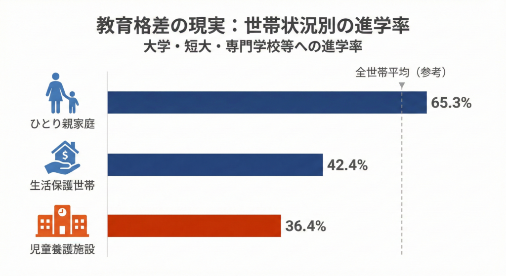 ・ひとり親家庭の子供の高校卒業後進学率65.3%